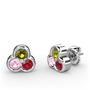 Peridot, pembe kuvars ve garnet 8 ayar beyaz altın küpe