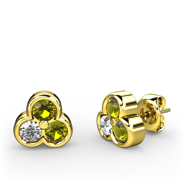 Peridot ve pırlanta 8 ayar altın küpe (0.22 karat)