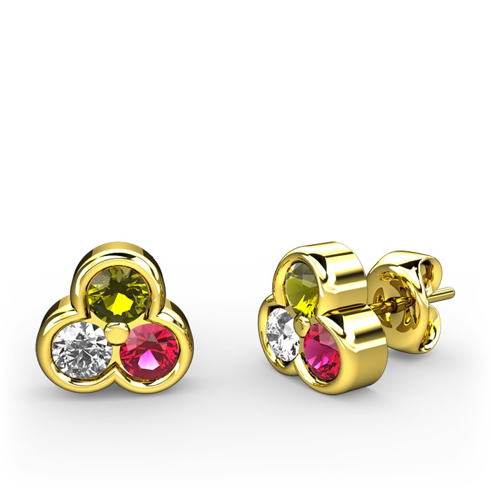 Peridot, pırlanta ve rodolit garnet 8 ayar altın küpe (0.22 karat)