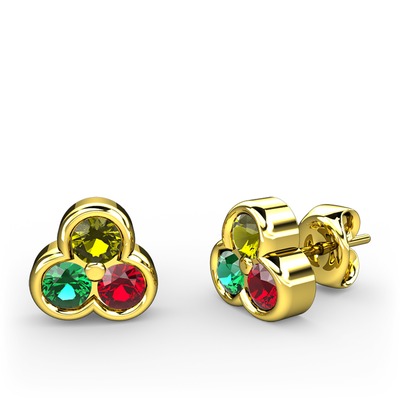 Peridot, yeşil kuvars ve garnet 14 ayar altın küpe