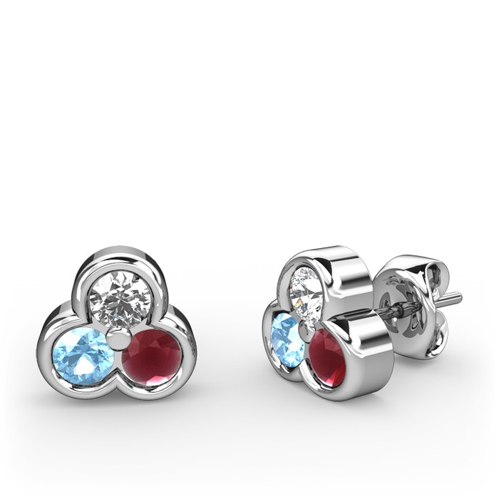 Pırlanta, akuamarin ve kök yakut 18 ayar beyaz altın küpe (0.22 karat)