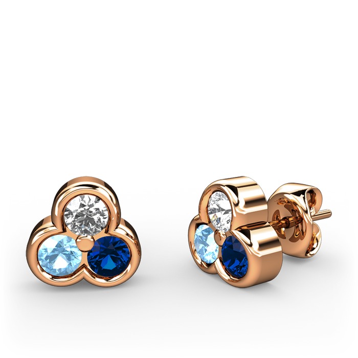 Pırlanta, akuamarin ve lab safir 18 ayar rose altın küpe (0.22 karat)