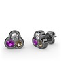 Pırlanta, ametist ve dumanlı kuvars 925 ayar siyah rodyum kaplama gümüş küpe (0.22 karat)