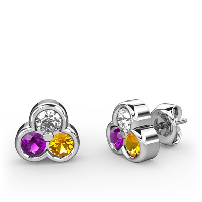 Pırlanta, ametist ve sitrin 8 ayar beyaz altın küpe (0.22 karat)
