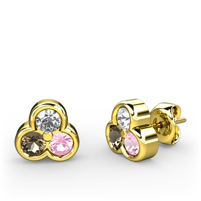 Pırlanta, dumanlı kuvars ve pembe kuvars 18 ayar altın küpe (0.22 karat)