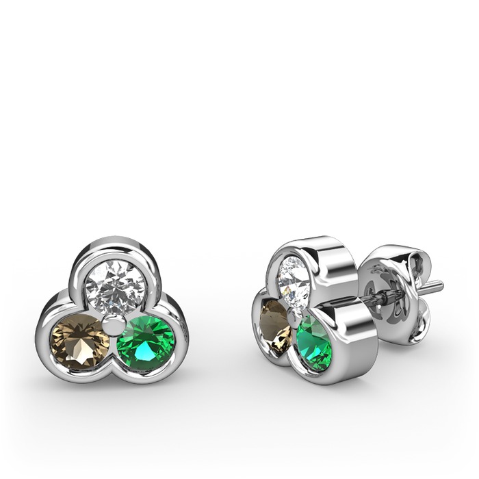 Pırlanta, dumanlı kuvars ve yeşil kuvars 18 ayar beyaz altın küpe (0.22 karat)