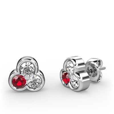 Pırlanta, garnet ve beyaz zirkon 925 ayar gümüş küpe (0.22 karat)
