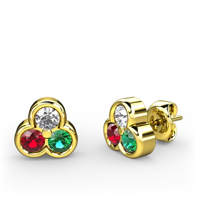 Pırlanta, garnet ve yeşil kuvars 925 ayar altın kaplama gümüş küpe (0.22 karat)