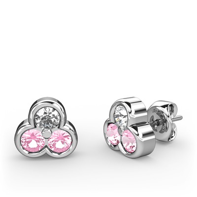Pırlanta ve pembe kuvars 18 ayar beyaz altın küpe (0.22 karat)