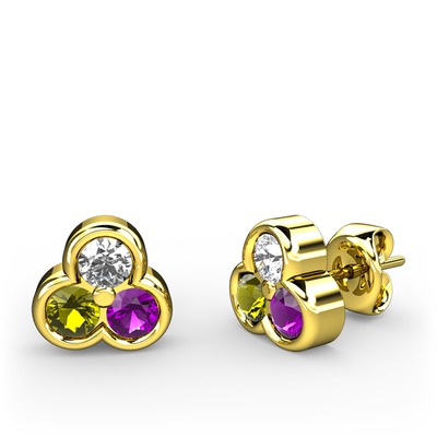 Pırlanta, peridot ve ametist 14 ayar altın küpe (0.22 karat)