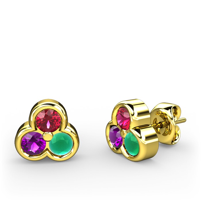 Rodolit garnet, ametist ve kök zümrüt 18 ayar altın küpe