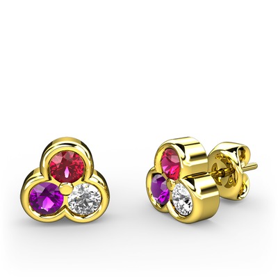 Rodolit garnet, ametist ve swarovski 8 ayar altın küpe