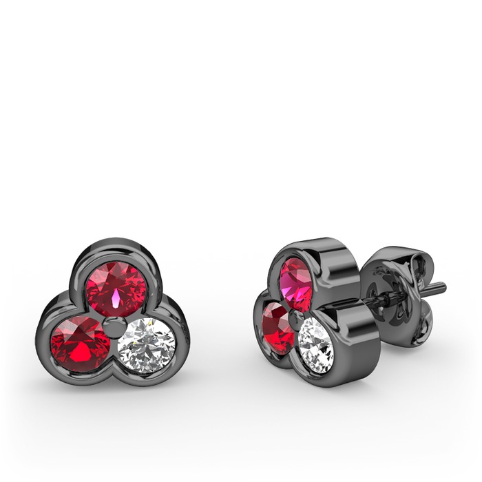 Rodolit garnet, garnet ve beyaz zirkon 925 ayar siyah rodyum kaplama gümüş küpe