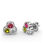 Rodolit garnet, peridot ve pırlanta 18 ayar beyaz altın küpe (0.22 karat)