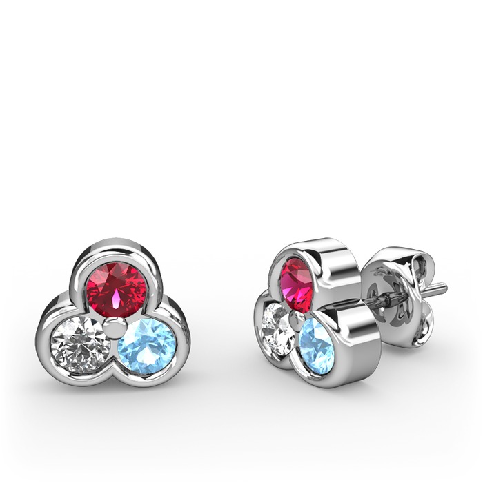 Rodolit garnet, swarovski ve akuamarin 14 ayar beyaz altın küpe