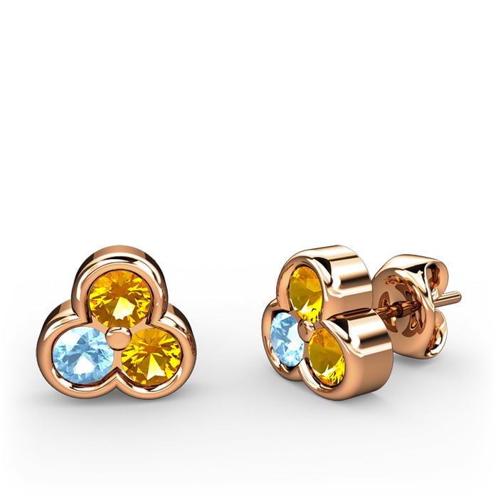 Sitrin ve akuamarin 14 ayar rose altın küpe