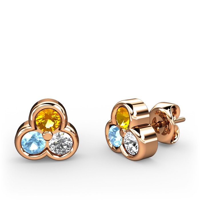 Sitrin, akuamarin ve pırlanta 14 ayar rose altın küpe (0.22 karat)