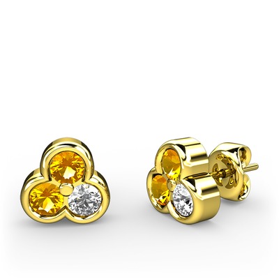 Sitrin ve beyaz zirkon 14 ayar altın küpe