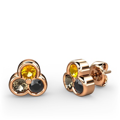 Sitrin, dumanlı kuvars ve siyah zirkon 14 ayar rose altın küpe