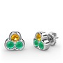 Sitrin ve kök zümrüt 18 ayar beyaz altın küpe