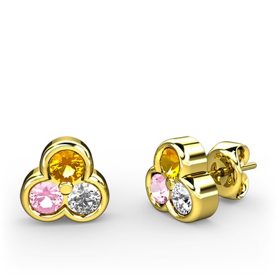 Sitrin, pembe kuvars ve beyaz zirkon 14 ayar altın küpe