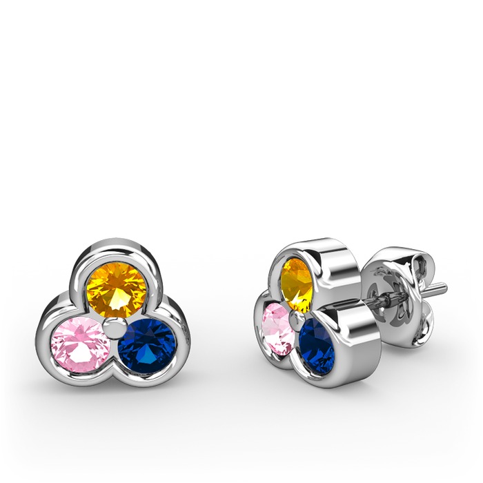 Sitrin, pembe kuvars ve lab safir 18 ayar beyaz altın küpe