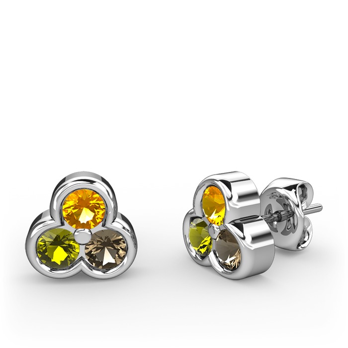 Sitrin, peridot ve dumanlı kuvars 18 ayar beyaz altın küpe