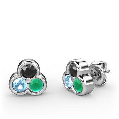 Siyah zirkon, akuamarin ve kök zümrüt 18 ayar beyaz altın küpe