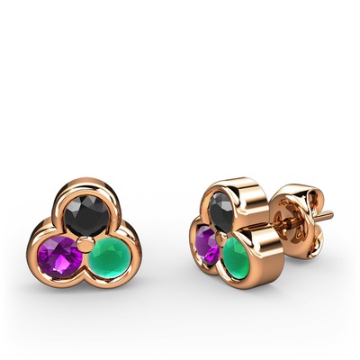 Siyah zirkon, ametist ve kök zümrüt 8 ayar rose altın küpe