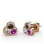 Siyah zirkon, beyaz zirkon ve ametist 18 ayar rose altın küpe