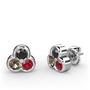 Siyah zirkon, dumanlı kuvars ve garnet 18 ayar beyaz altın küpe