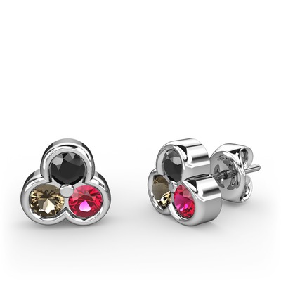 Siyah zirkon, dumanlı kuvars ve rodolit garnet 14 ayar beyaz altın küpe