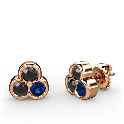 Siyah zirkon ve lab safir 8 ayar rose altın küpe
