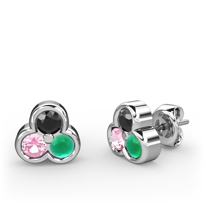 Siyah zirkon, pembe kuvars ve kök zümrüt 8 ayar beyaz altın küpe