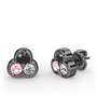 Siyah zirkon, pembe kuvars ve pırlanta 925 ayar siyah rodyum kaplama gümüş küpe (0.22 karat)