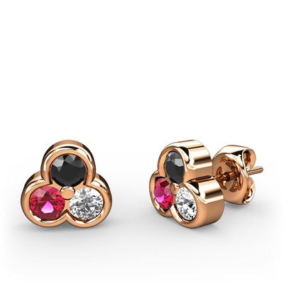 Siyah zirkon, rodolit garnet ve beyaz zirkon 18 ayar rose altın küpe