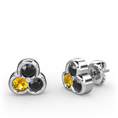 Siyah zirkon ve sitrin 925 ayar gümüş küpe