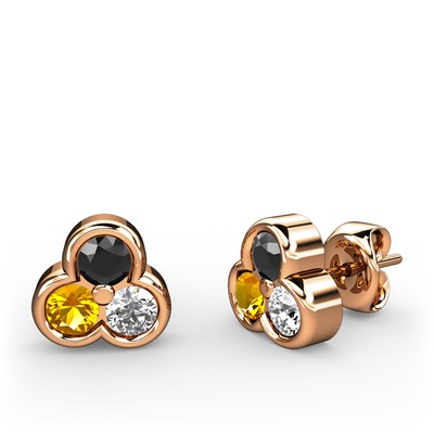 Siyah zirkon, sitrin ve pırlanta 14 ayar rose altın küpe (0.22 karat)