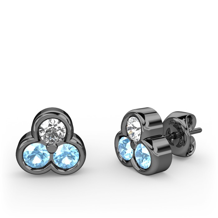 Swarovski ve akuamarin 925 ayar siyah rodyum kaplama gümüş küpe