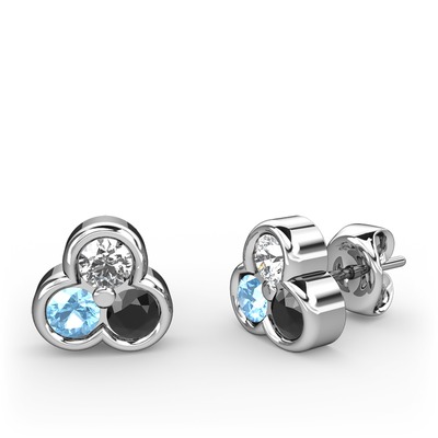 Swarovski, akuamarin ve siyah zirkon 925 ayar gümüş küpe