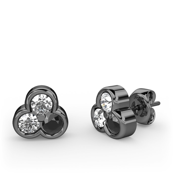 Swarovski, beyaz zirkon ve siyah zirkon 925 ayar siyah rodyum kaplama gümüş küpe