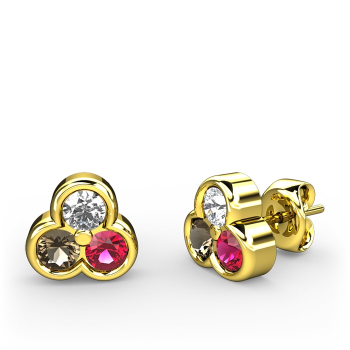 Swarovski, dumanlı kuvars ve rodolit garnet 925 ayar altın kaplama gümüş küpe
