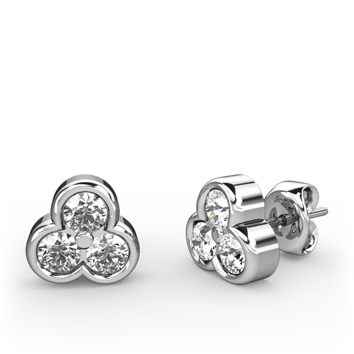 Swarovski ve pırlanta 14 ayar beyaz altın küpe (0.22 karat)