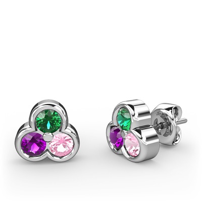 Yeşil kuvars, ametist ve pembe kuvars 8 ayar beyaz altın küpe