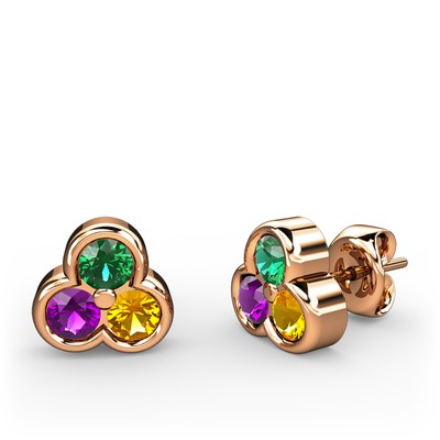 Yeşil kuvars, ametist ve sitrin 925 ayar rose altın kaplama gümüş küpe