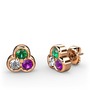 Yeşil kuvars, beyaz zirkon ve ametist 18 ayar rose altın küpe