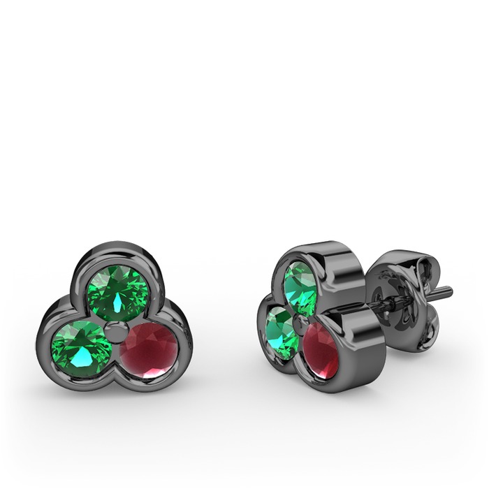 Yeşil kuvars ve kök yakut 925 ayar siyah rodyum kaplama gümüş küpe