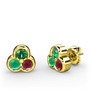 Yeşil kuvars, kök zümrüt ve kök yakut 14 ayar altın küpe