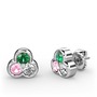 Yeşil kuvars, pembe kuvars ve beyaz zirkon 18 ayar beyaz altın küpe