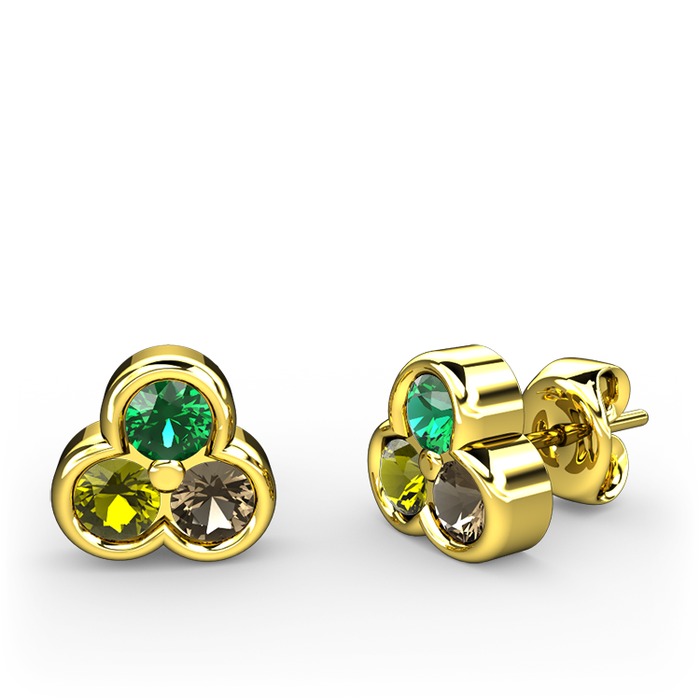 Yeşil kuvars, peridot ve dumanlı kuvars 14 ayar altın küpe